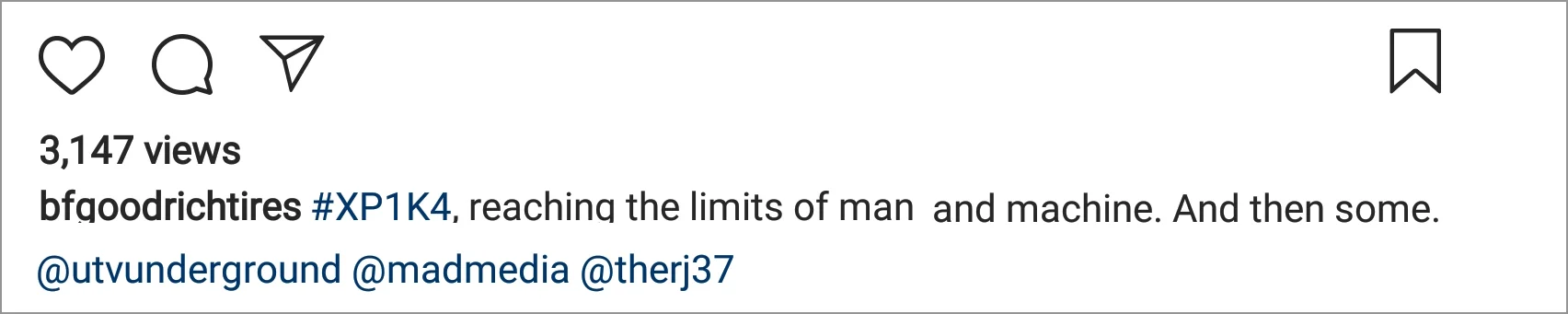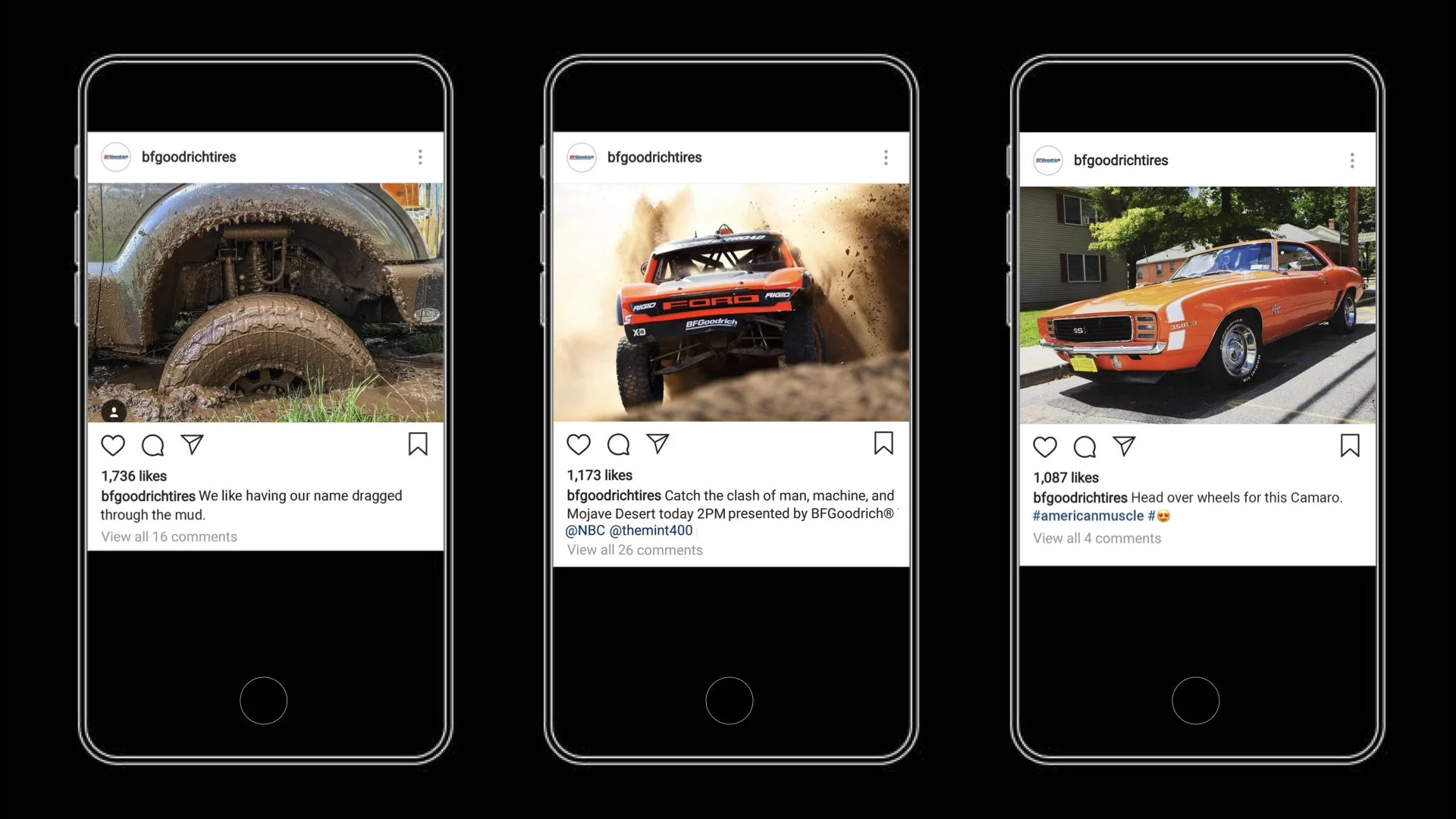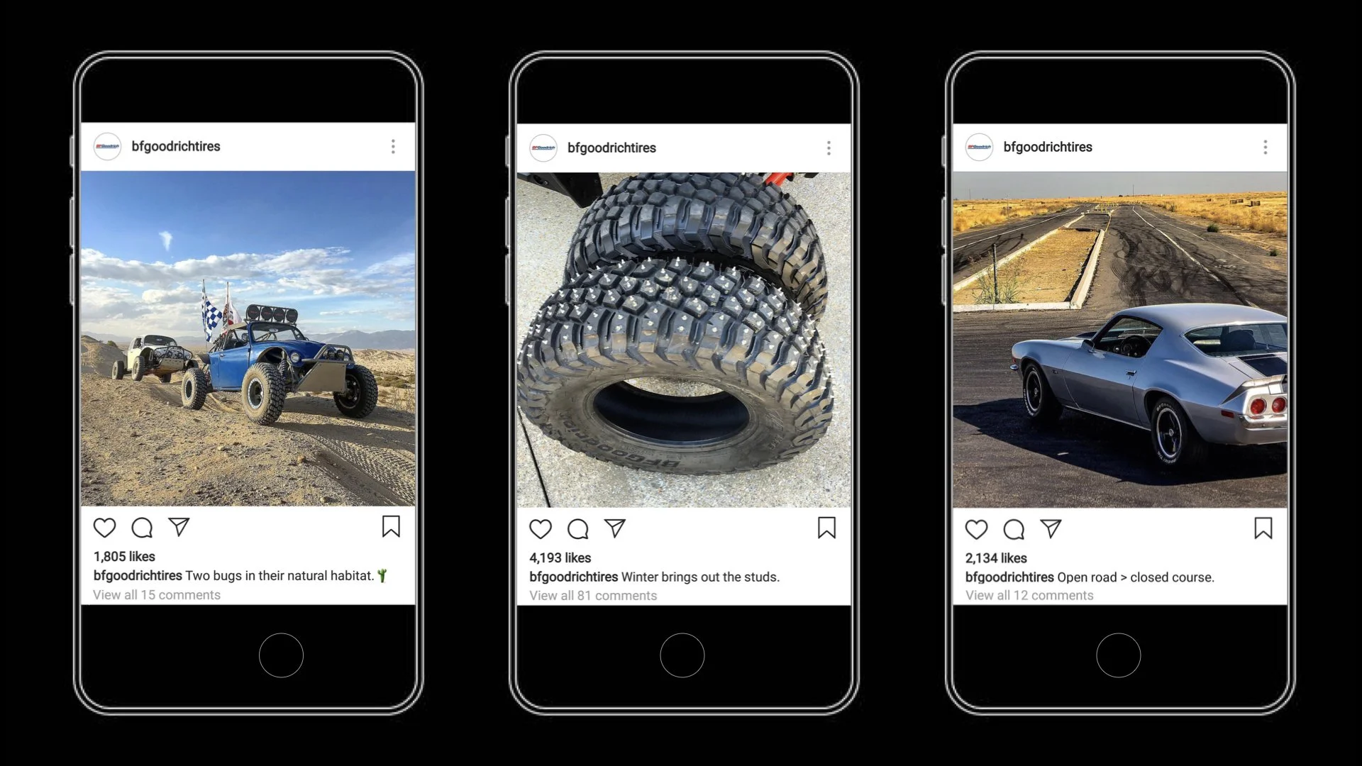 As a lead in Sapient’s Social Studio, I served as primary content creator and copywriter for BFG’s 4-wheeling, mud-slinging gearheads. This collection features a range of my favs, from the Baja desert to the Vegas strip.